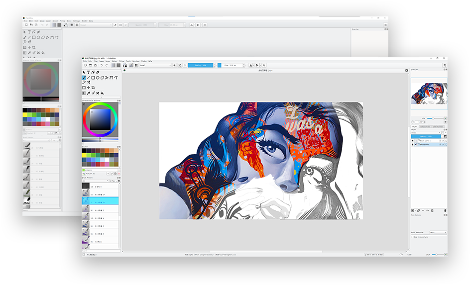 PaintBox 的软件界面直观易用,不会妨碍你的创作流程。面板可以随意拖放、分组、弹出,调整后的界面可以保存为工作区,可以一键在不同工作区之间切换。键盘快捷键、画布视图修饰键均可定制。
